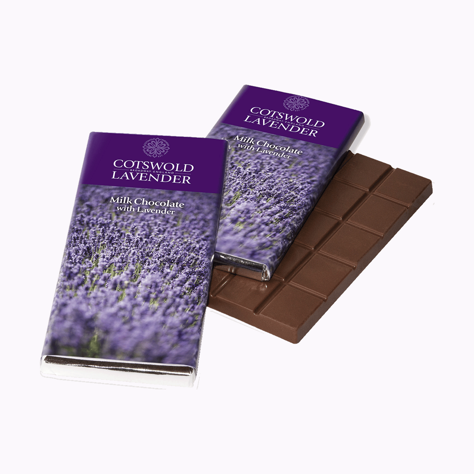 A bar of good quality chocolate, infused with natural Lavender made for us by an English Chocolate company based in Lincolnshire. 80g bar.