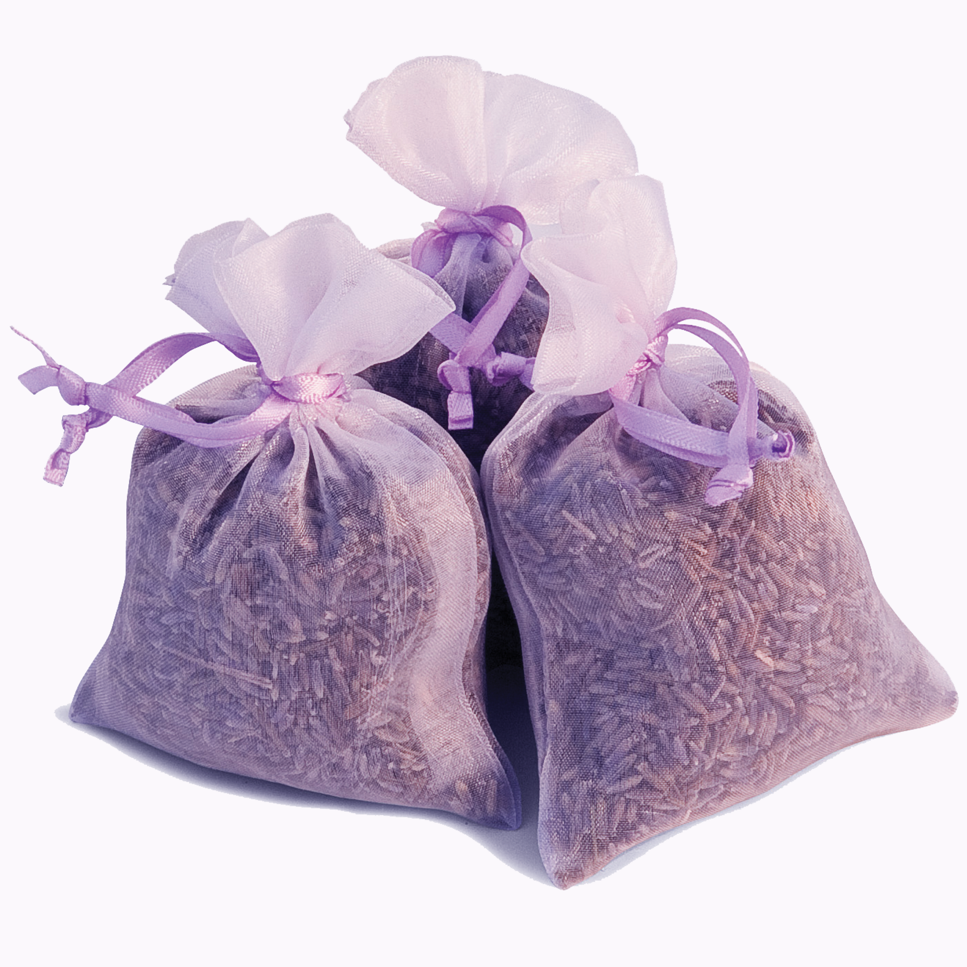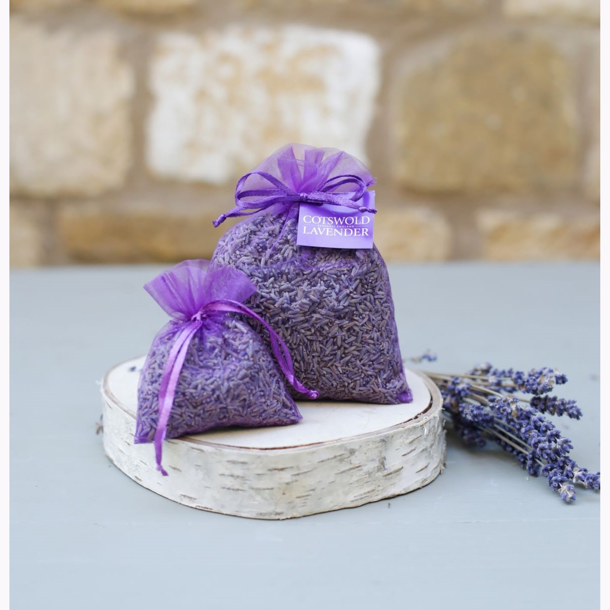 A lovely organza bag filled with our air dried lavender grains. Put them in your drawers or wardrobe to scent your clothes or leave out to fragrant your room. Available in two sizes: small and large. The small ones are ideal to hang on your coat hangers or in the car! Shade of bag may vary to that shown in picture.